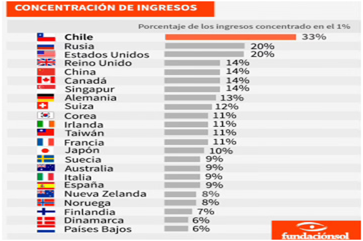 La distribución del producto, en Chile, es atrozmente regresiva, o se concentra en muy pocas manos. Un estudio de la Fundación Sol lo muestra muy gráficamente: